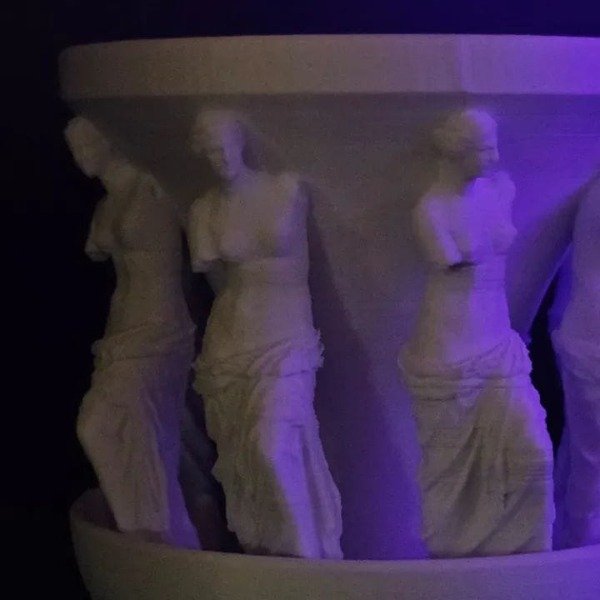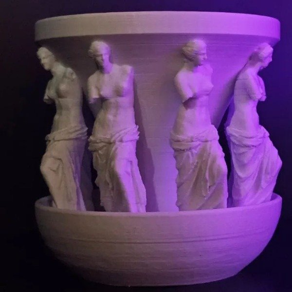 -Maceta con ocho figuras de Venus. La maceta central tiene agujeros en el lateral, que drena el agua hacia el plato inferior. Por lo tanto, conviene plantar musgos u otras plantas en el plato inferior.